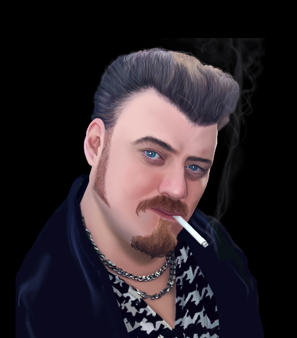 This is a portrait I painted in Adobe Photoshop of Ricky from Trailer Park Boys. To the right is the reference image I used while making this piece of art. It was a good exercise for learning brush blending and color matching and I would love to paint another portrait this same way again soon.