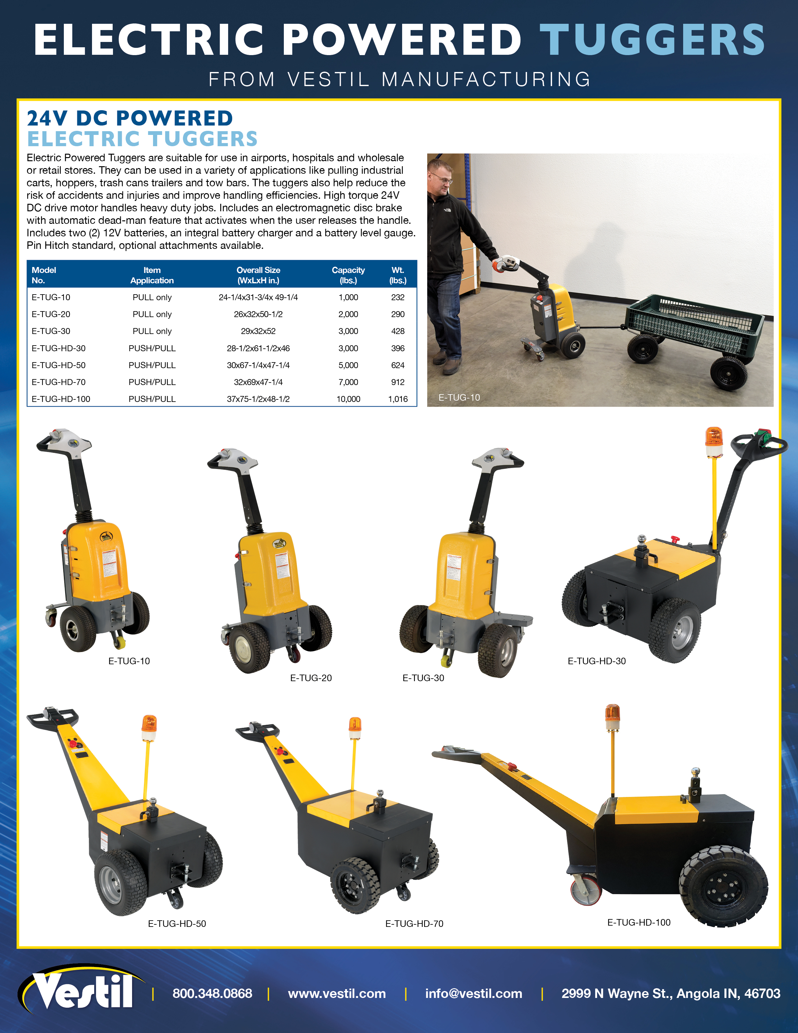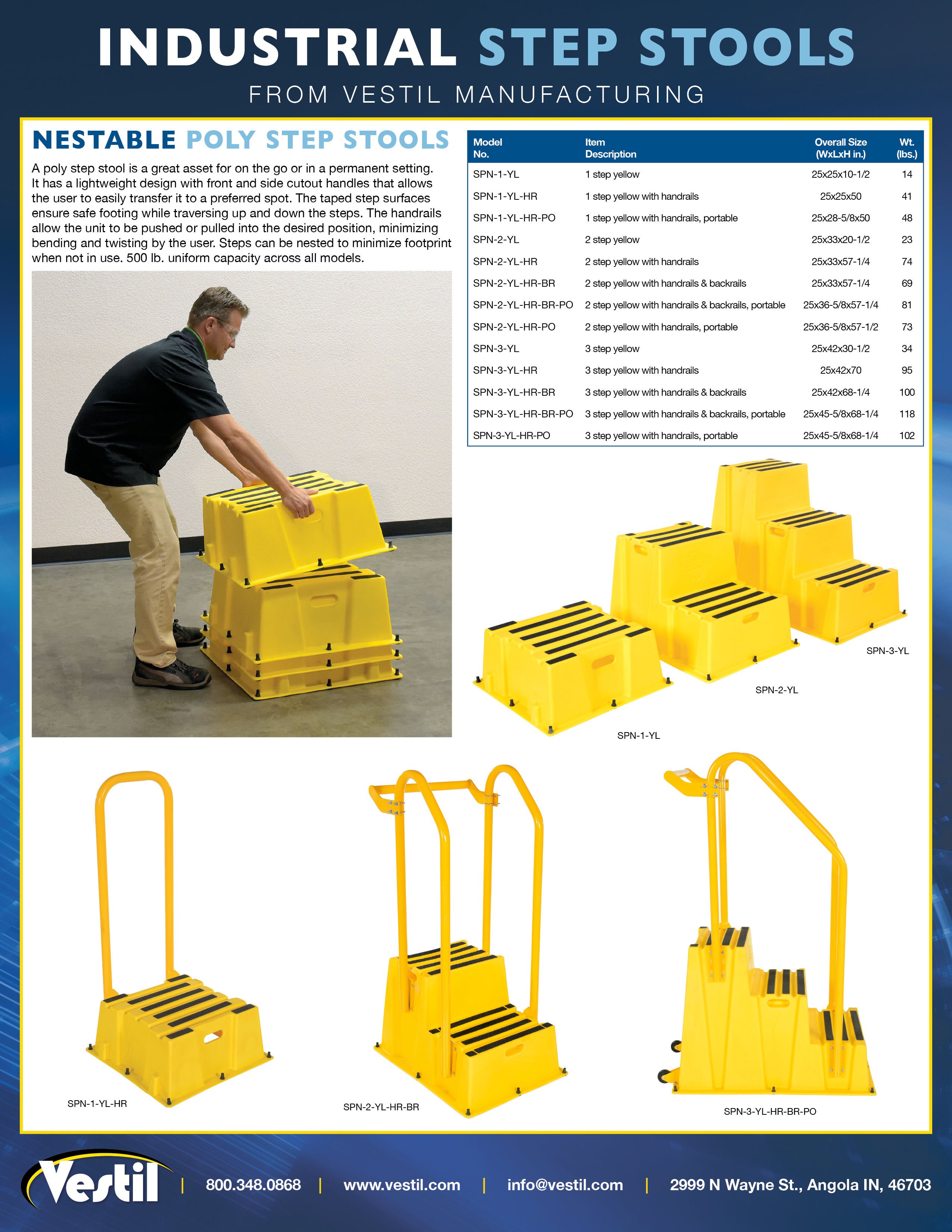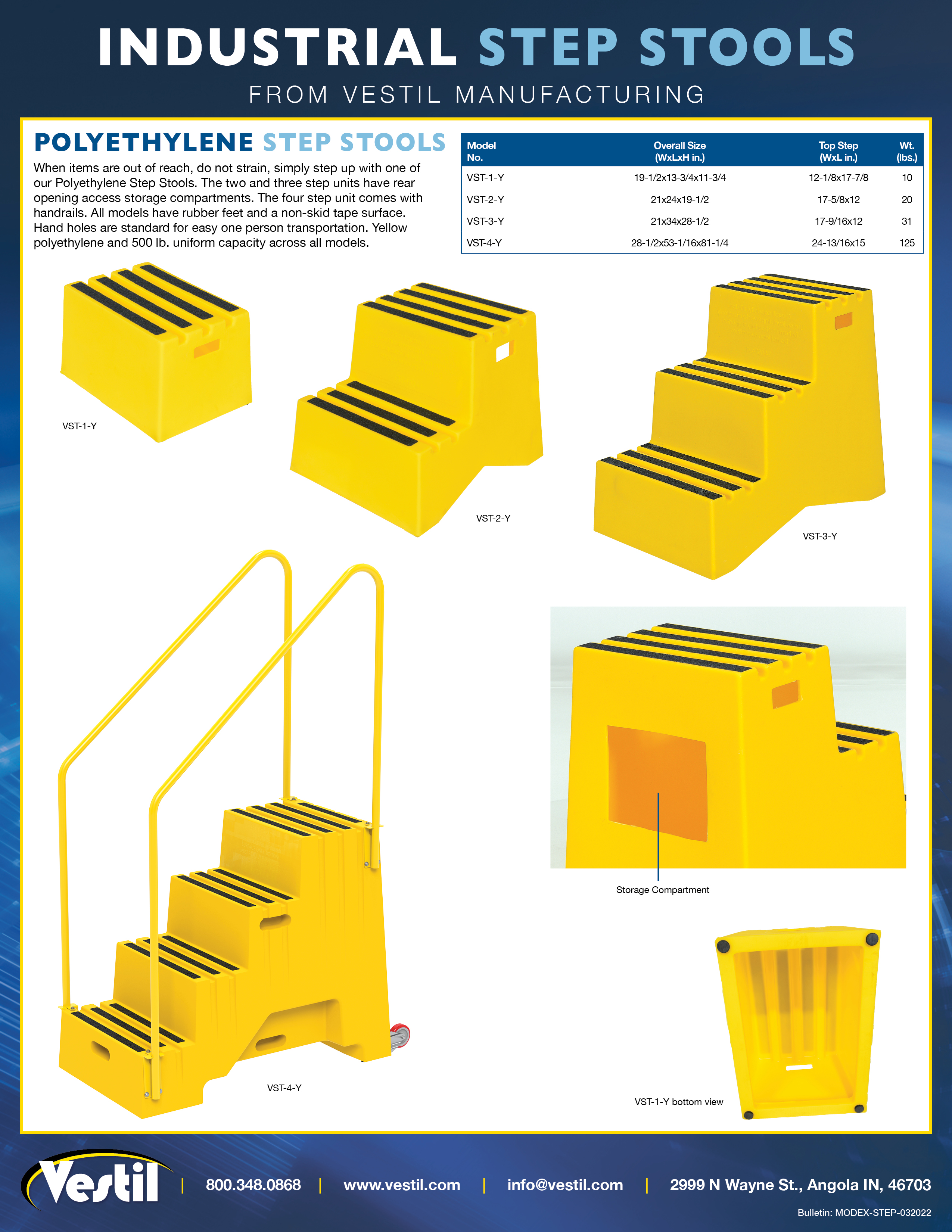 This is a two-sided flyer created for in 2019 for Nucor, one of Grainger’s subsidaries, that is highlighting Vestil’s best-sellers to Grainger. Grainger is not as specific as some of the other large distributors when it comes to the use of their logo and how we combine our branding with theirs, so this is more heavily branded towards Vestil’s preferred look. The headings throughout are all red to remind the viewer that this is a Grainger flyer. The rest of it includes Vestil blue in the table headers and their signature swirl background. The flyer was printed and distributed to the Nucor reps as a promotional piece.