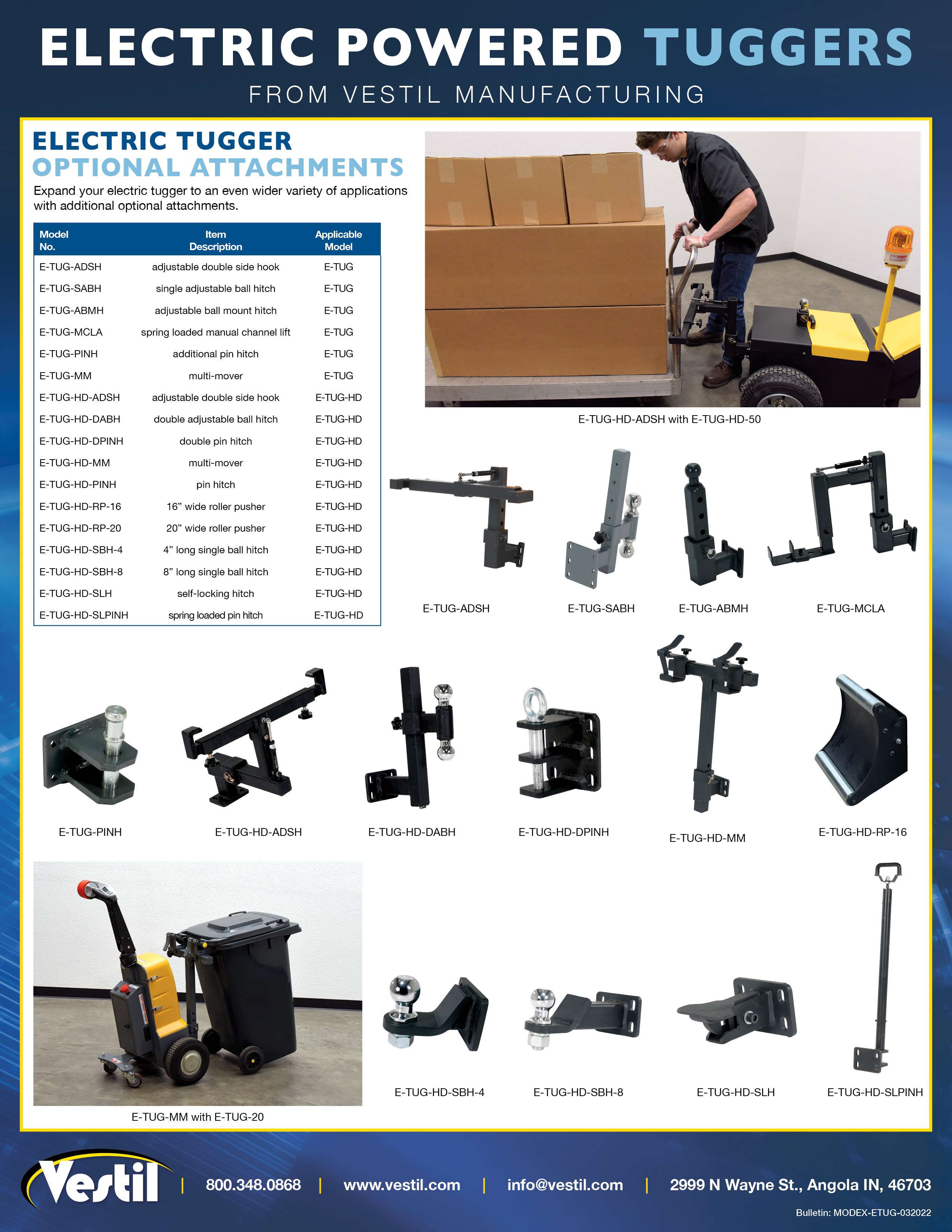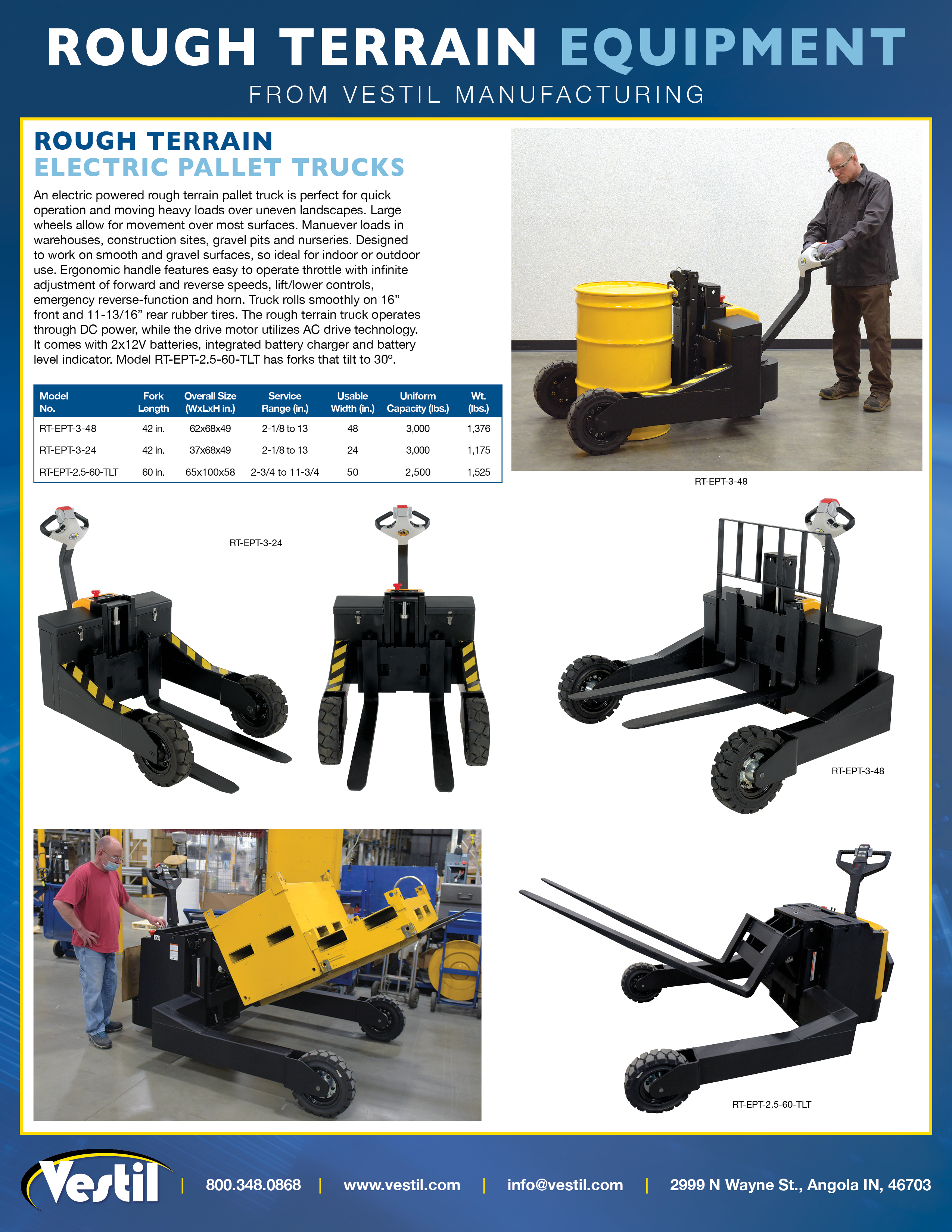 I created these branding pieces for the ProMat 2022 trade show in Atlanta. The bold font at the top of the page draws your eyes to the headlines and the sans serif font and the clean tables keeps it easy to read. Vestil wanted the images to be the main focal point of the flyers, so I arranged them in a purposeful way to keep your eyes on the page. These were passed out to potential distributors and customers.